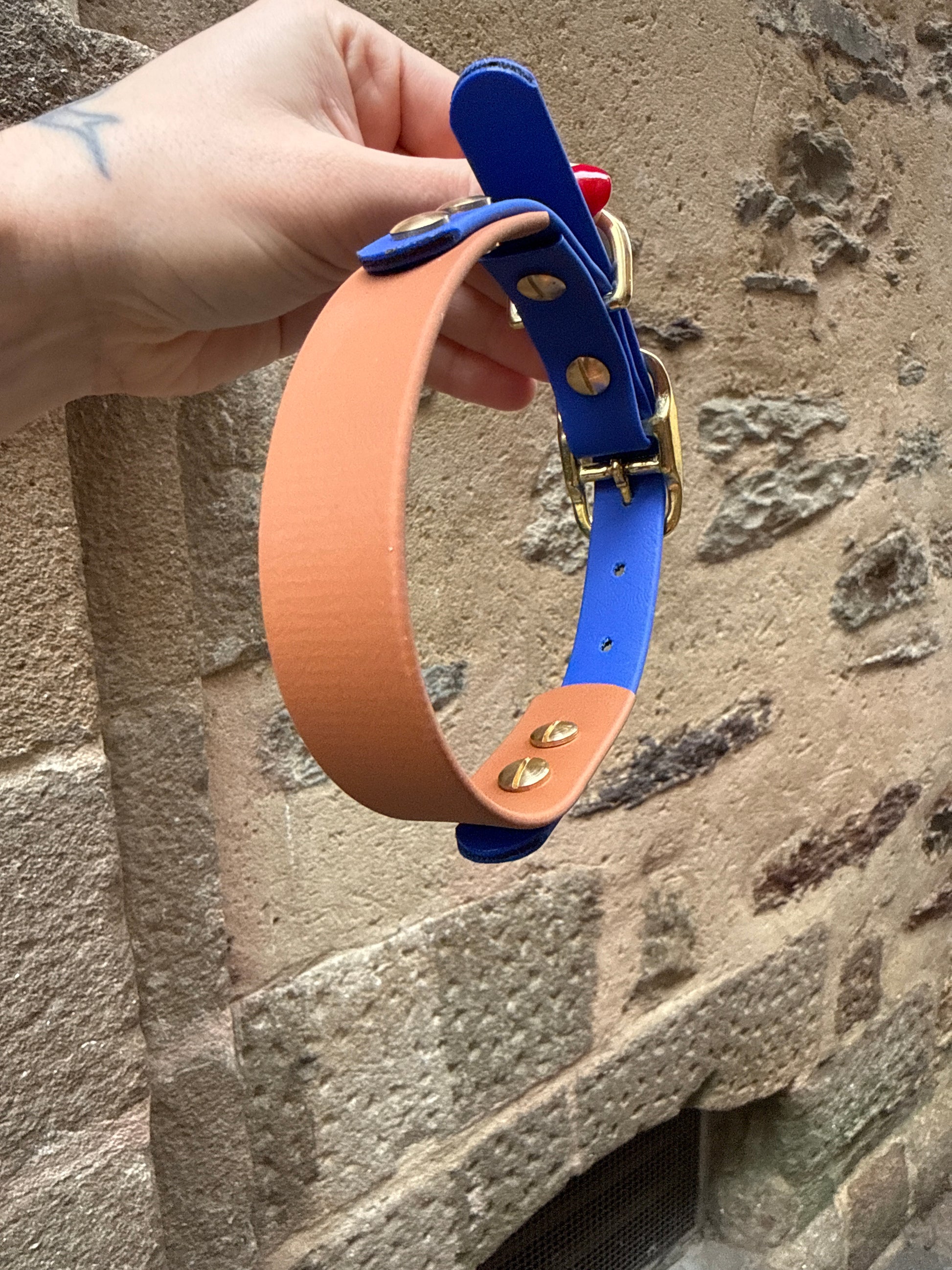 💦Ce collier en Biothane certifié 100% Waterproof combine élégance et praticité avec ses couleurs Camel et bleu Roi